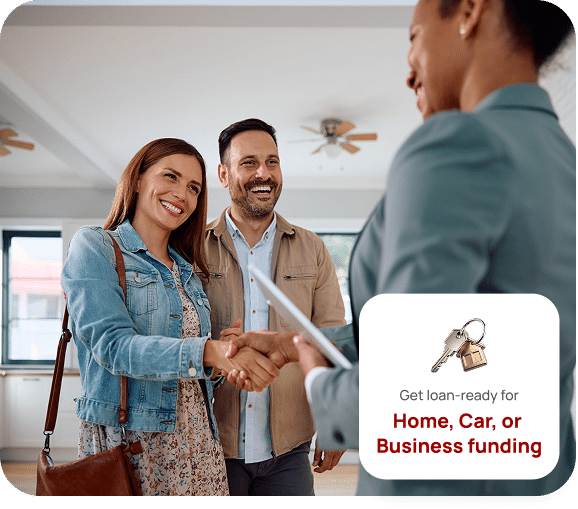 Our goal is to ensure you are loan ready for home purchases, vehicle financing, and business funding.